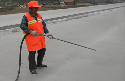4、灌縫:將攪拌好的混合料倒入專(zhuān)用機(jī)具中,調(diào)節(jié)流量和灌入深度,將料擠入縫內(nèi);為保證優(yōu)良的施工性能,混合料好在40分鐘內(nèi)用完。