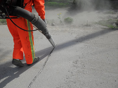 用空壓機或背負式吹風機將槽內(nèi)的碎渣及裂縫兩側(cè)至少lOcm范圍內(nèi)的灰塵徹底清掃干凈。